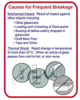 - Result of impact against other objects including: Other glassware / Loading and unloading of dishwasher / / Bussing of tables-cutlery dropped in glassware / Draft beer pour Taps and sinks
